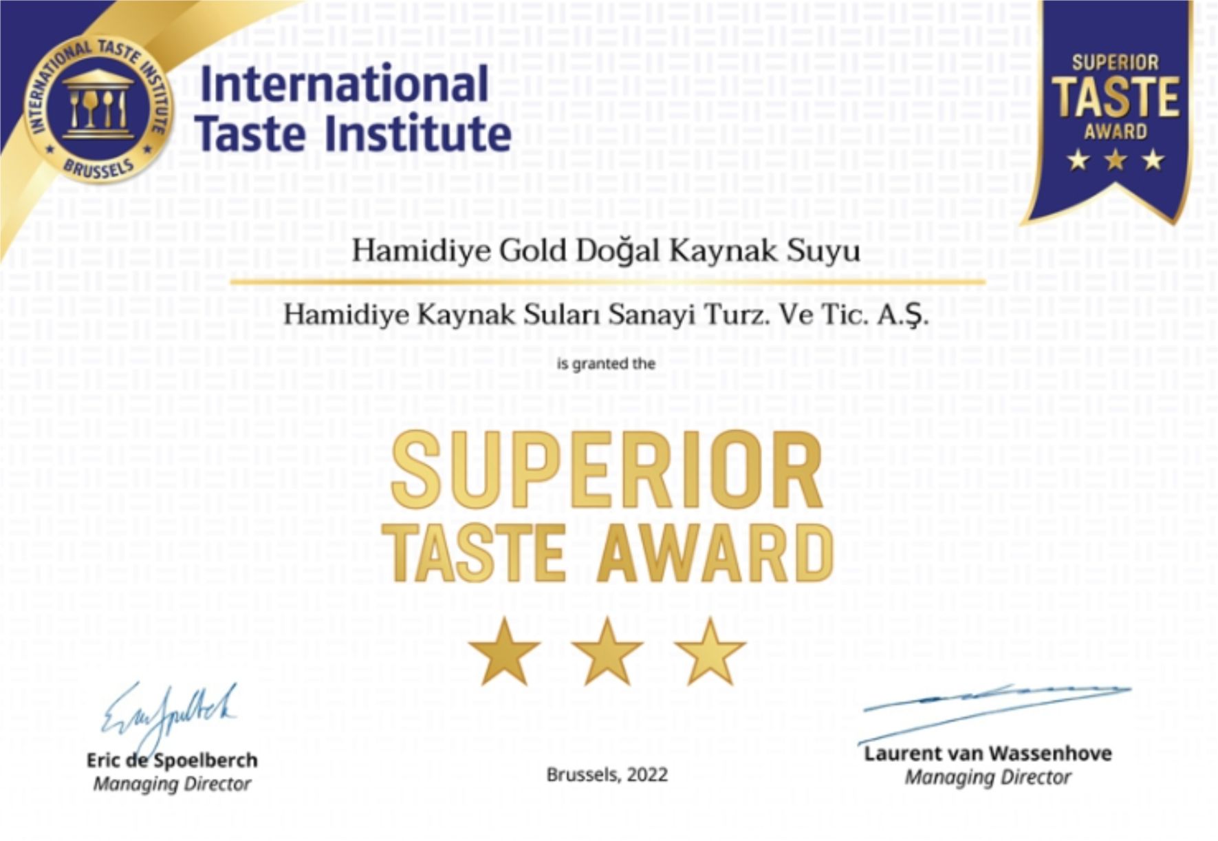 Brüksel'deki Uluslararası Lezzet Enstitüsü Ödülü