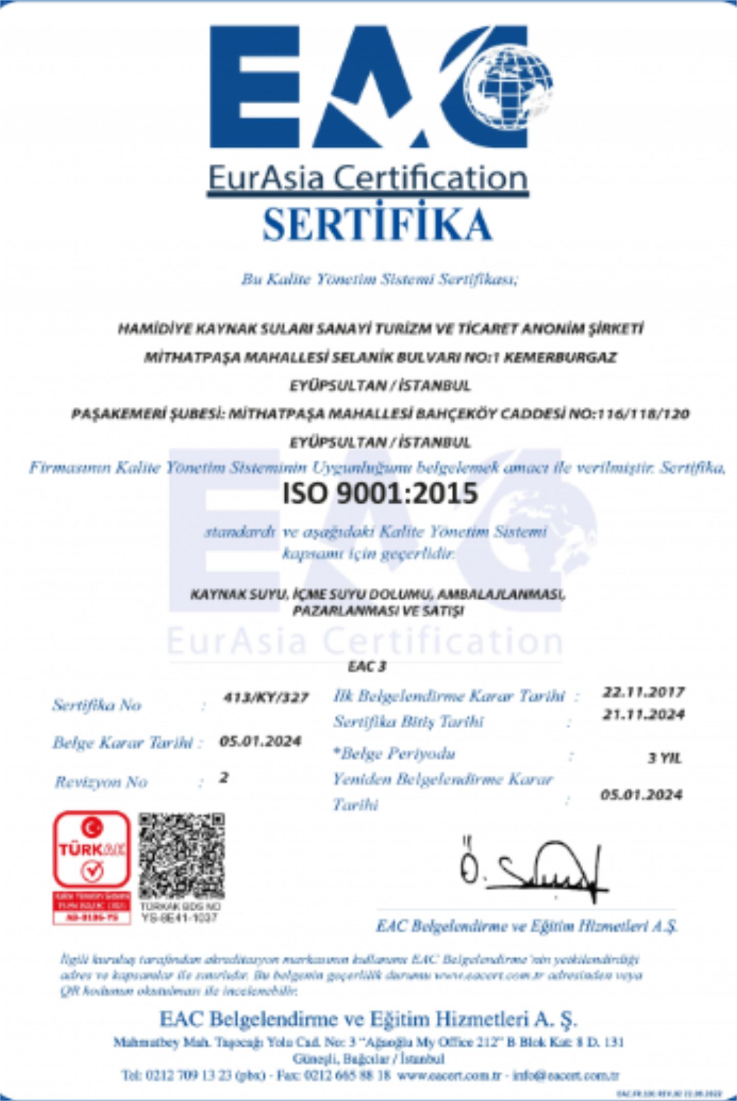 IISO 9001:2015 kalite belgesi